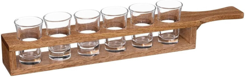 Secret de Gourmet Houten Shot Tray met 6 Glazen - Natuurlijk, 41 x 7,5 x 5,5 cm