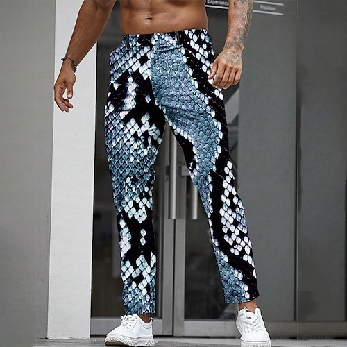 Per uomo Illusione ottica Pelle di serpente Pantaloni Eleganti Pantaloni Pantaloni da Abito Misura del girovita medio Casual All'aperto Pantaloni a gamba dritta con tasche Primavera Autunno Stampa 3D