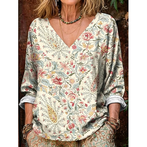 Per donna Blusa Grafico Geometrico Vintage Elegante Casual Manica 3/4 Scollo a V Top Regolari Quotidiano Stampato Rosa Arancione Beige Estate Primavera