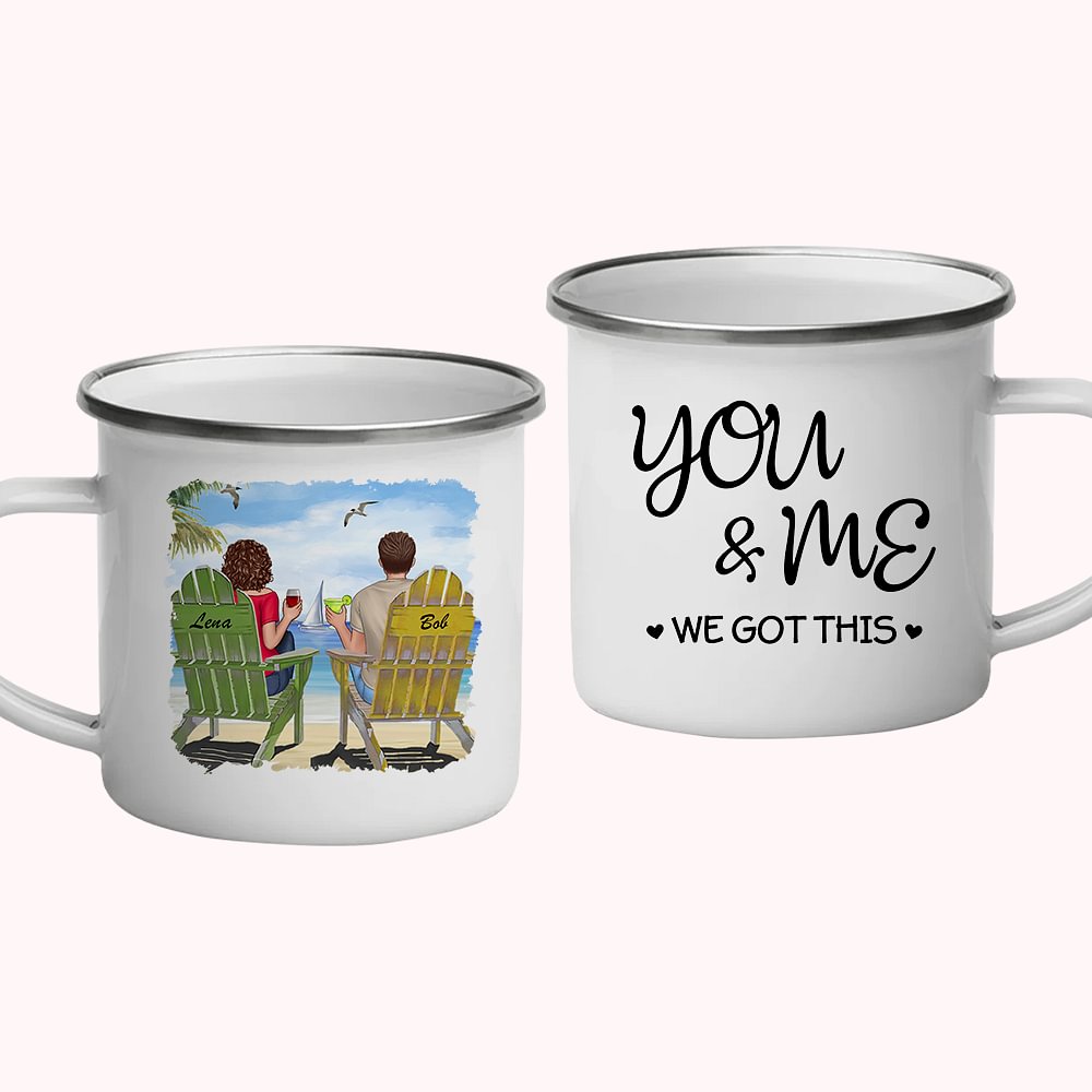 Personalizzato You and Me We Got This Blue Sky Ocean Ship Smalto Mug Forte San Valentino Natale