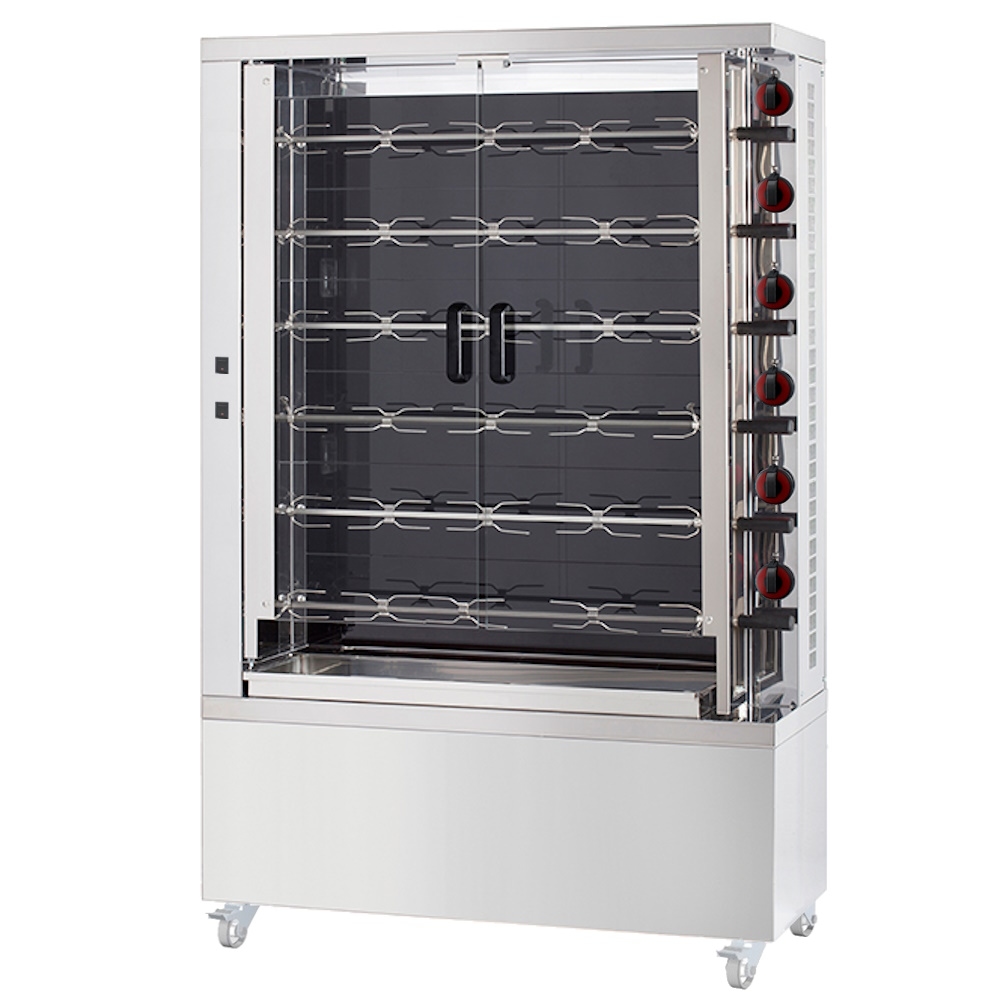 Vitrokeramik hähnchengrill 6 schwerter = 30/36 hühner - 1100x450x1760 mm - 25200 W 400/3V - 53304063 Eurast