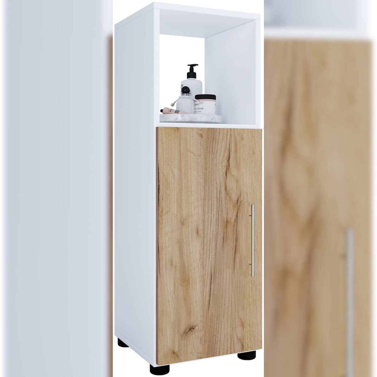 VCM Badmöbel Midischrank Flandu Weiß / Honig-Eiche H. 93 x B. 31 x T. 30 cm