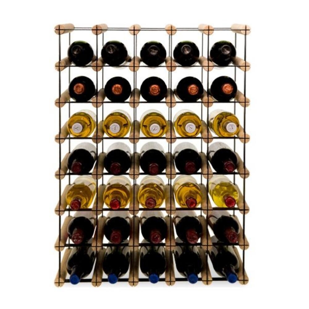 PROREGAL Modulares Weinregal VINOTECA MOD METAL | HxBxT 72,5x52,5x24,5cm | 5x7 Flaschen | Massives Kiefernholz | Natur | Flaschenregal