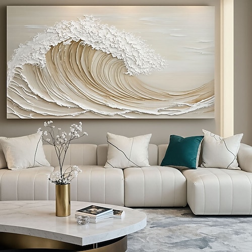 dipinto a olio originale fatto a mano su tela con onde testurizzate in 3D, arte murale astratta con oceano, grande decorazione murale su tela, opera d'arte costiera neutra, arte murale per soggiorno
