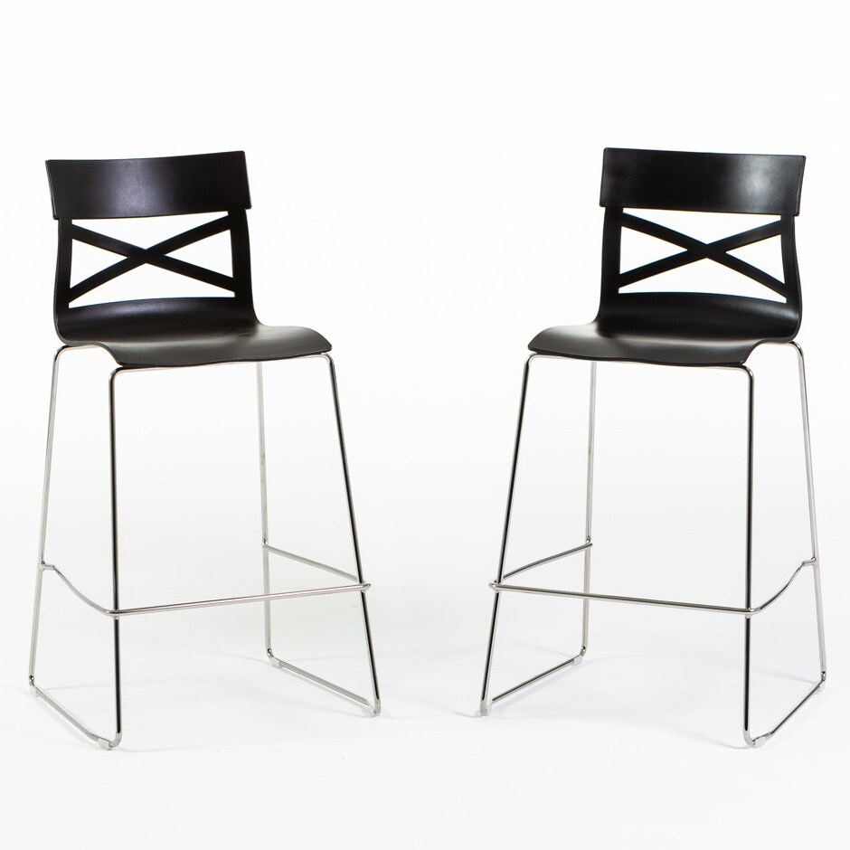 RATTATAN 2er-Set Barhocker aus glasfaserverstärktem Polypropylen mit Metallbeinen, modernes Design für Bar, Restaurant oder Küche – Martina XL – Schwarz