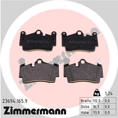 ZIMMERMANN Bremsbelagsatz, Scheibenbremse pb:z 23694.165.9 hinten rechts links Foto entspricht Lieferumfang für PORSCHE VAG 95535293903 95535293902 95