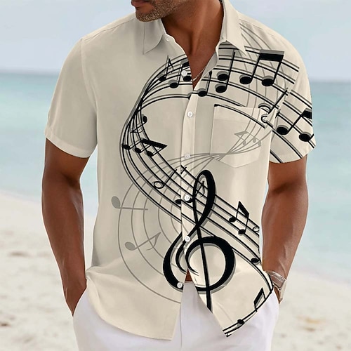 Per uomo Note Musicali Camicia Camicia Estiva Camicia con Bottoni Manica Corta Moda Casual Quotidiano Festival Musicale Estate Primavera Collo ripiegato Stampa 3D camicie con colletto Una tasca