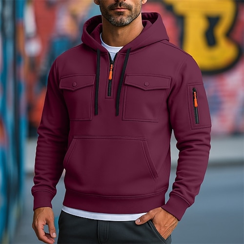 Per uomo Felpa con cappuccio Felpa con cappuccio e zip corta Felpa con cappuccio in pile Felpa con cappuccio tattica Nero Bianco Verde militare Rosso Borgogna Con Cappuccio Semplice Cerniera