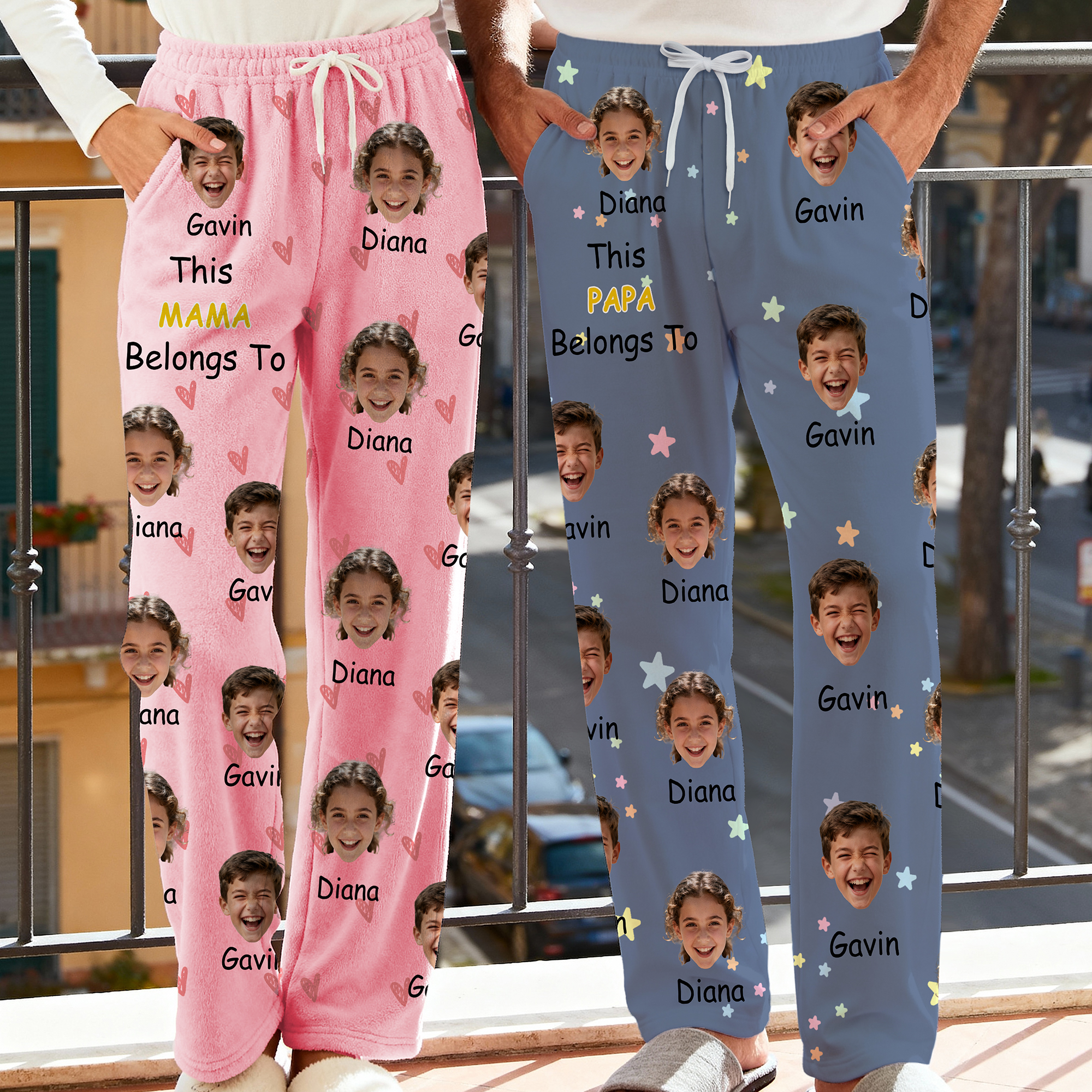 Personalizzato Questo appartiene a 1-6 foto del viso Pantaloni del pigiama in pile con nome e tasca Regalo di compleanno anniversario da indossare tutti i giorni per gli amici della famiglia