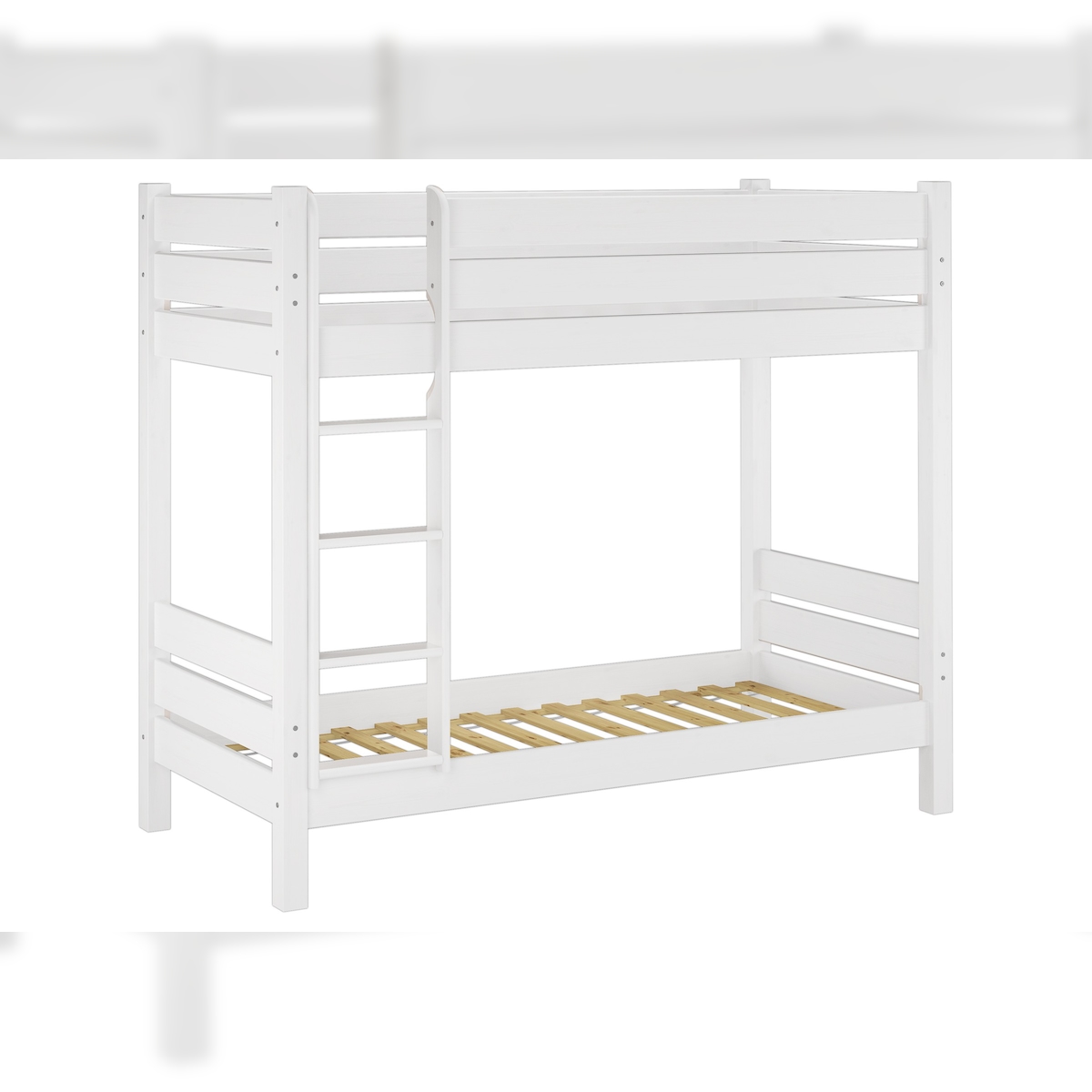 Erst-Holz Massivholz-Etagenbett sehr stabil weiß 100x190 Hochbett teilbar mit 2 Rollroste 60.16-10-190WT80