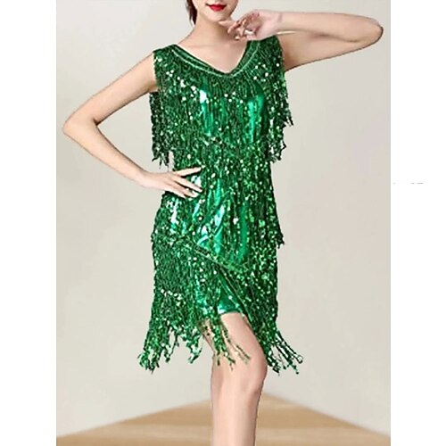 Danza Latina Vestito Giunzione Paillette Per donna Performance Allenamento Festa a Tema Senza Maniche Spandex