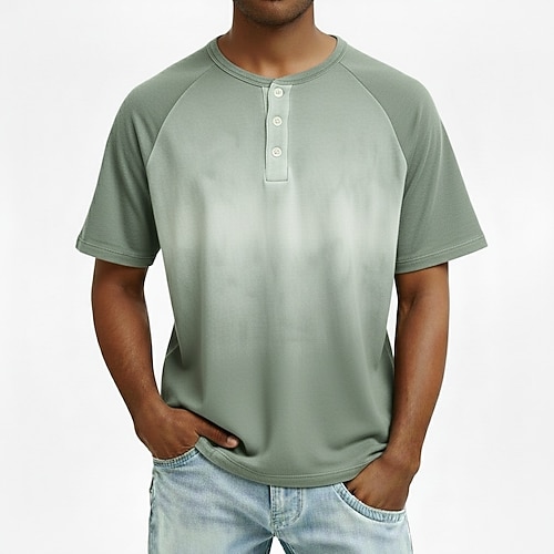 Per uomo Ombre Grafico Sfumatura Maglia Henley Manica Corta Moda Designer Casual Quotidiano All'aperto Estate Primavera Autunno Tutte le stagioni Verde chiaro Blu scuro Blu chiaro Henley Maglietta