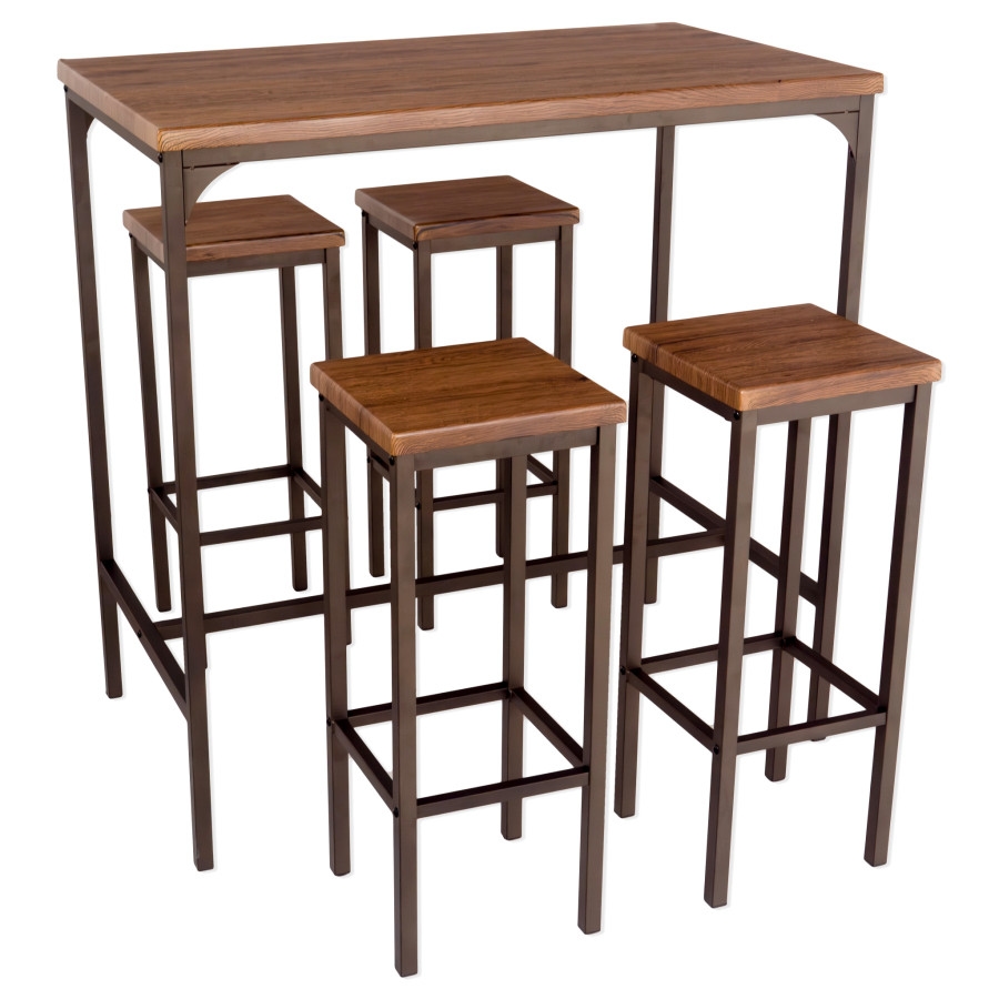 Yelloo Set aus rechteckigem STEHTISCH 110x66xH110cm und 4 HOCKER Walnussbraun Mod. FIRENZE