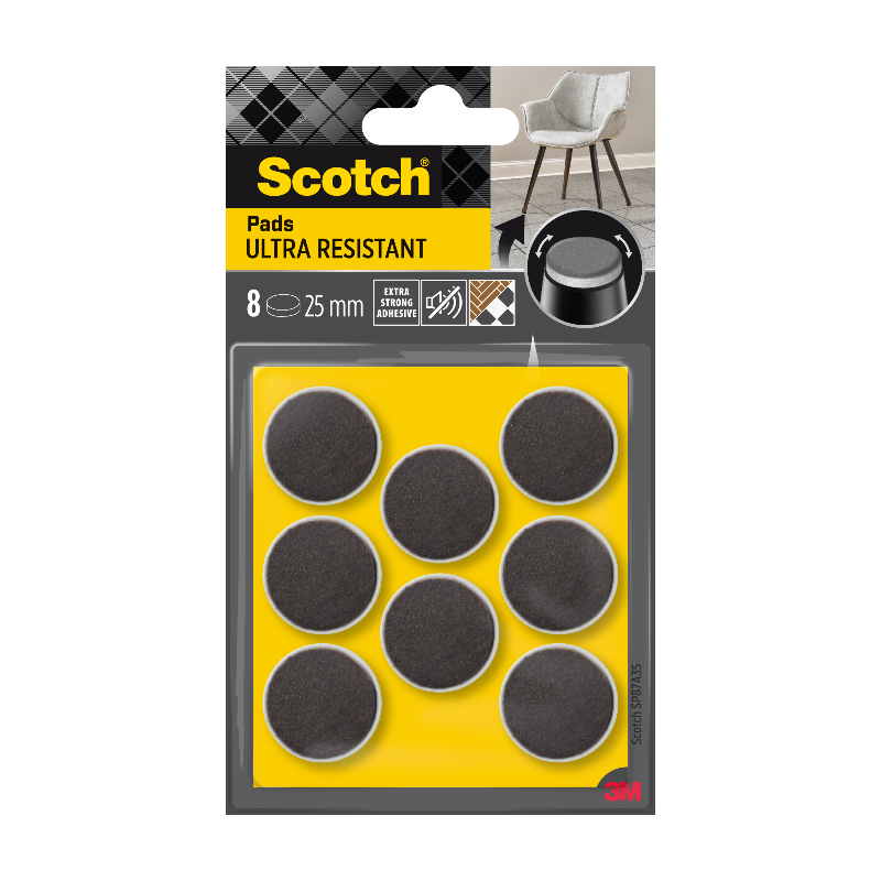 Scotch®Patin feutre bi-matière adhésif arrondi Gris / Blanc Ø 25 mm