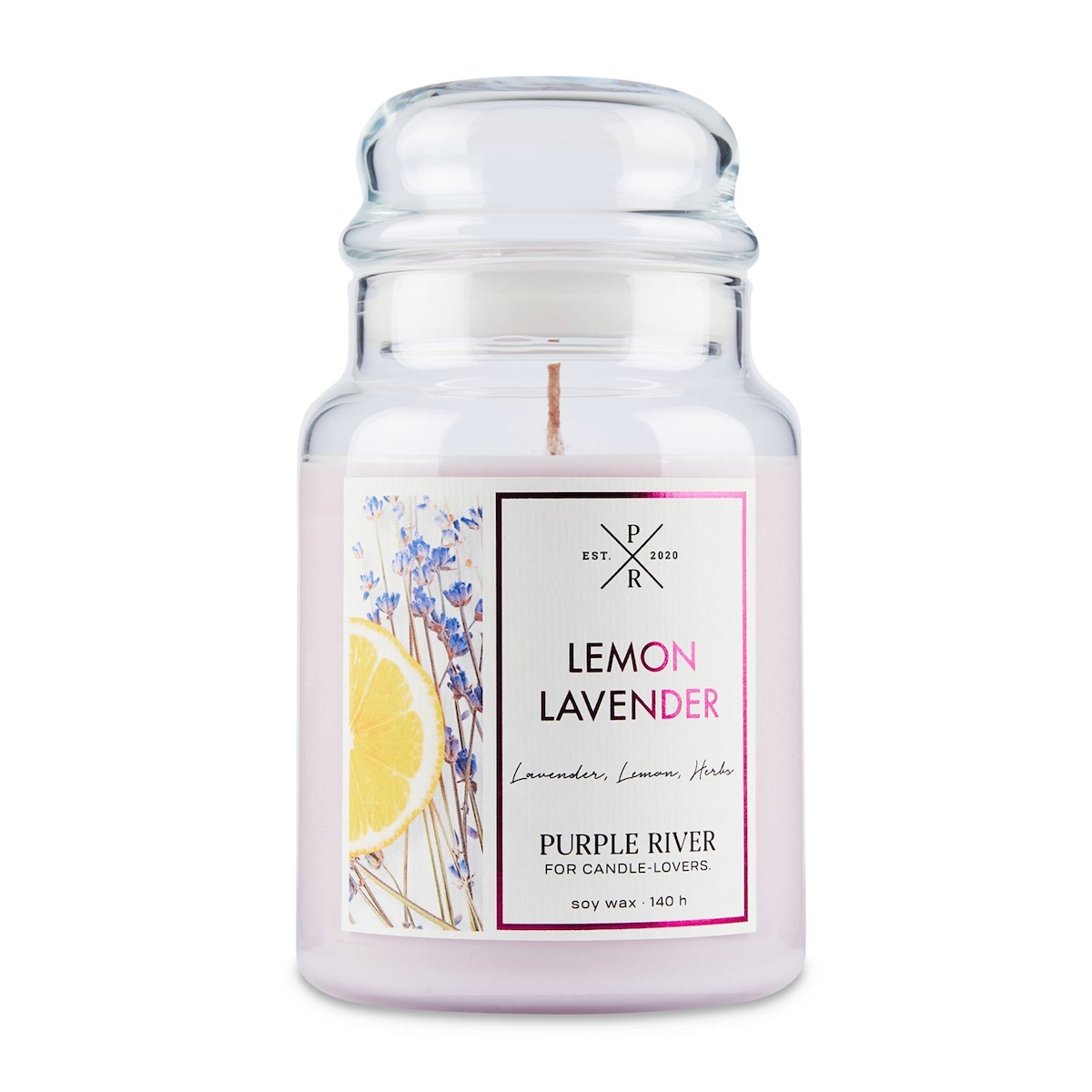 Fragrance and Style GmbH Duftkerze Purple River Lemon Lavender, handgegossen, Sojawachs, 623g, Brenndauer 140h, Glas, 2 Baumwolldochte