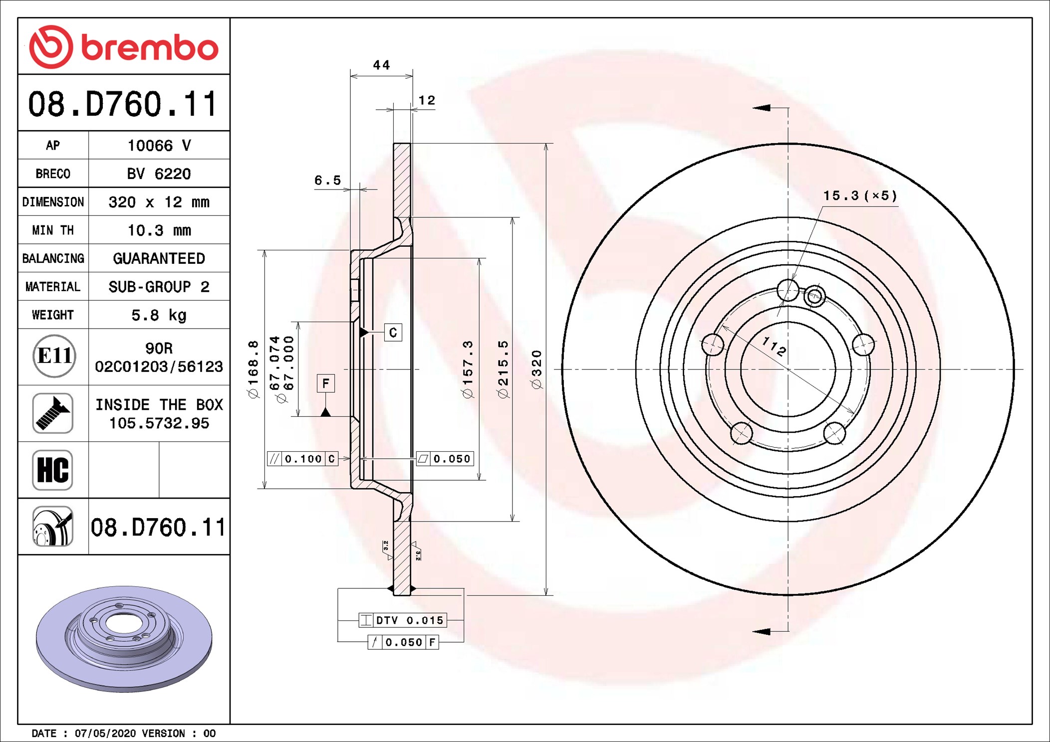 BREMBO Bremsscheibe 08.D760.11 hinten rechts links voll 320mm für MERCEDES-BENZ (BBDC) 247423031207 A2474230312 A247423031207