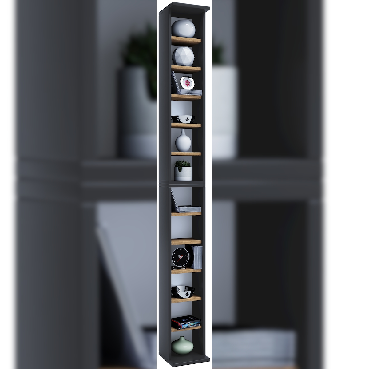 VCM Standregal Bigol Anthrazit / Honig-Eiche H. 180 x B. 21 x T. 20 cm