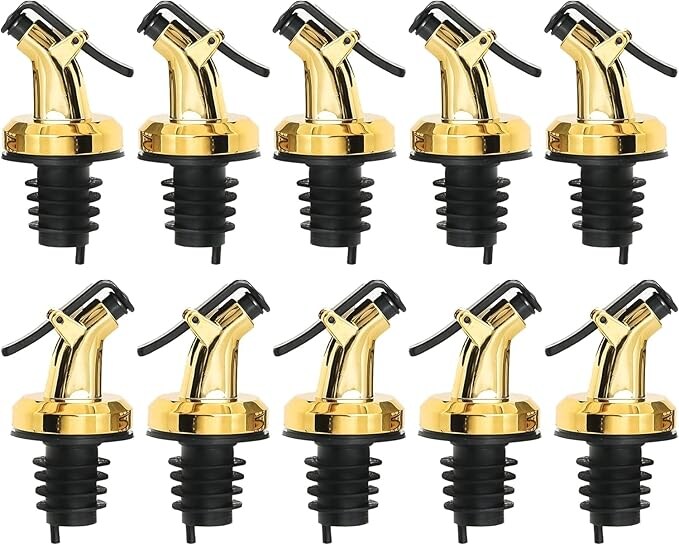 Ausgießer für Flaschen Gold mit Verschlusskappe aus Kunststoff in 10er Set