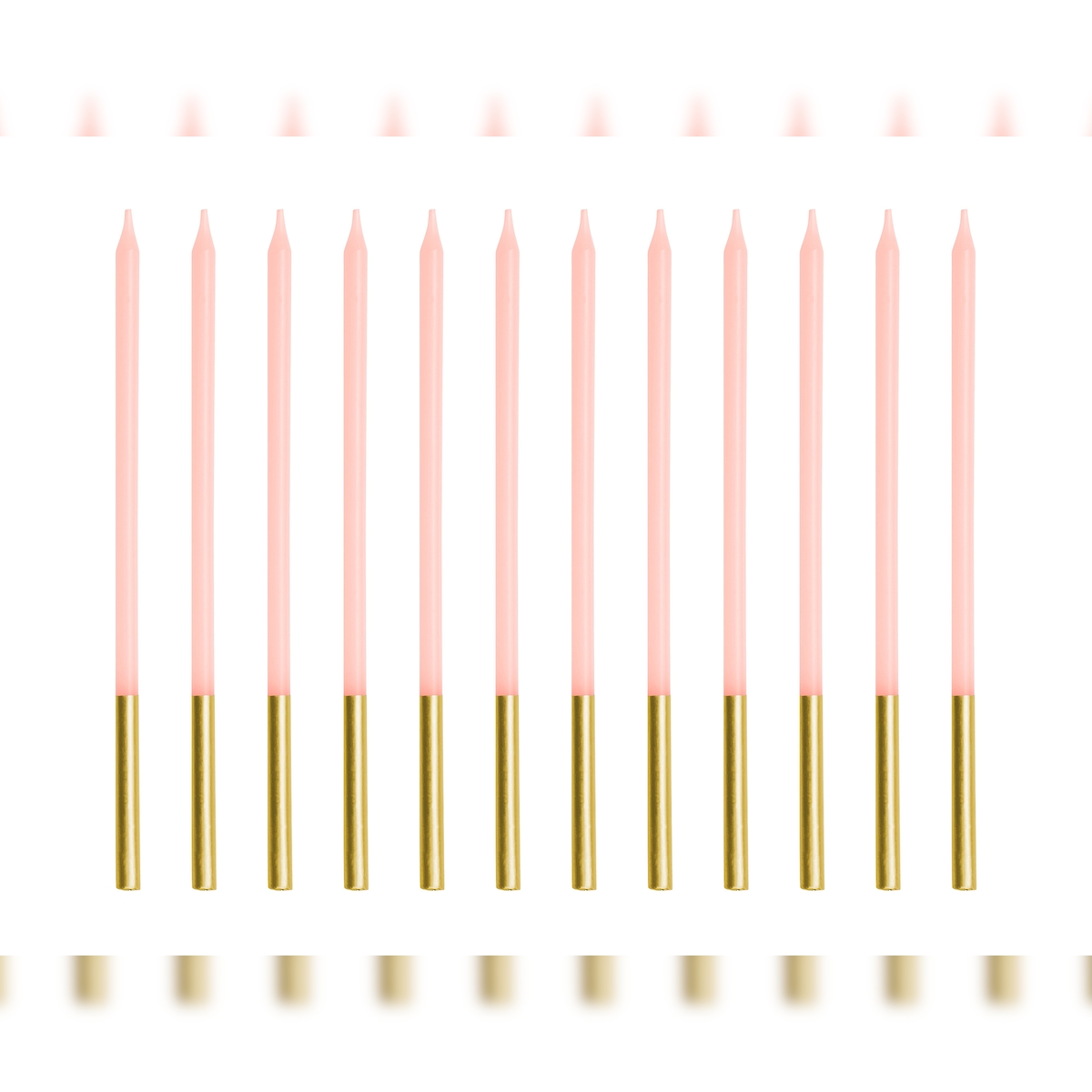 PartyDeco Geburtstagskerzen 14cm glatt 12er Set Kuchenkerzen Geburtstag Kerzen Torte Geburtstagskuchen Tortenkerzen Rosa Gold