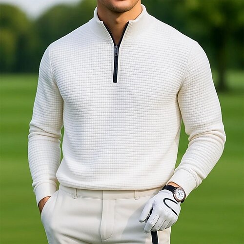 Per uomo Magliette Polo a Nido d'Ape Sport all'Aperto Casuale Colletto Mao Zip a un quarto Manica Lunga Moda Moderno Tinta unica Testurizzato Lavorato a maglia Primavera Autunno Tutte le stagioni