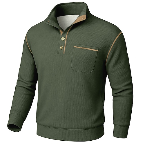 Per uomo Maglia Felpa Polo Nero Bianco Verde militare Cachi Grigio Colletto Mao Semplice Testurizzato Sport Outdoor Casuale Quotidiano Streetwear Cool Designer Primavera Autunno Abbigliamento