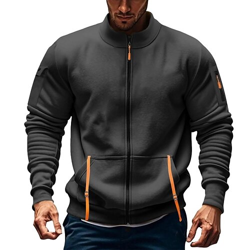 Per uomo Felpa Felpa con zip Di pile Compatto Nero Verde militare Blu marino Grigio Colletto Mao Liscio Sportivo Giornaliero Per eventi Streetwear Essenziale Informale Primavera Autunno