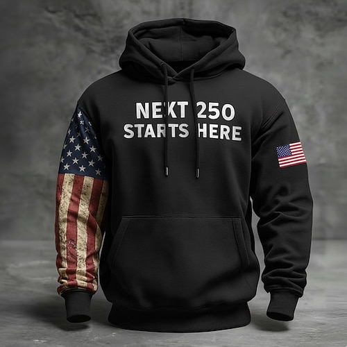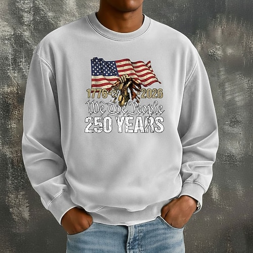 Felpa da uomo con grafica, bandiera americana, 250° anniversario, sportiva, moda, quotidiano, classica, girocollo, per attività all'aperto, vacanza, blu, nero, rosso, verde, stampa, primavera,