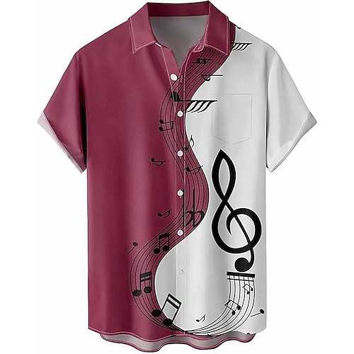 San Valentino Per uomo Note Musicali A cuore Camicia Camicia Estiva Camicia con Bottoni Manica Corta Moda Casual Regalo Ferie Estate Primavera Collo ripiegato Stampa 3D camicie con colletto Una tasca