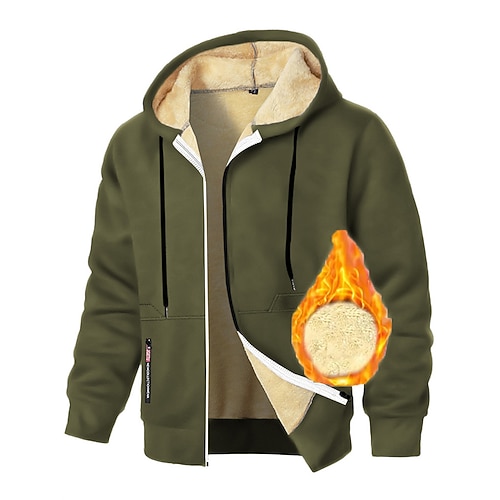 Per uomo Felpa con cappuccio a zip intera Felpa con cappuccio e zip Sherpa morbido Giacca in Pile Felpa con cappuccio in pile Verde militare Blu Cammello Verde Grigio Con Cappuccio Semplice Con zip