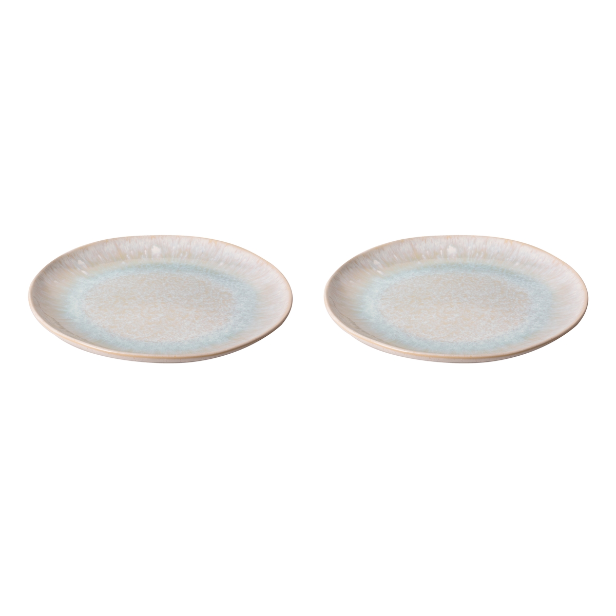 2 x palmer Light Blue Sea Teller Servieren flach im Set, Steinzeug, Ø 28,5 cm, beige hellblau gesprenkelt, Handwerkliche Ausstrahlung, für Pizza