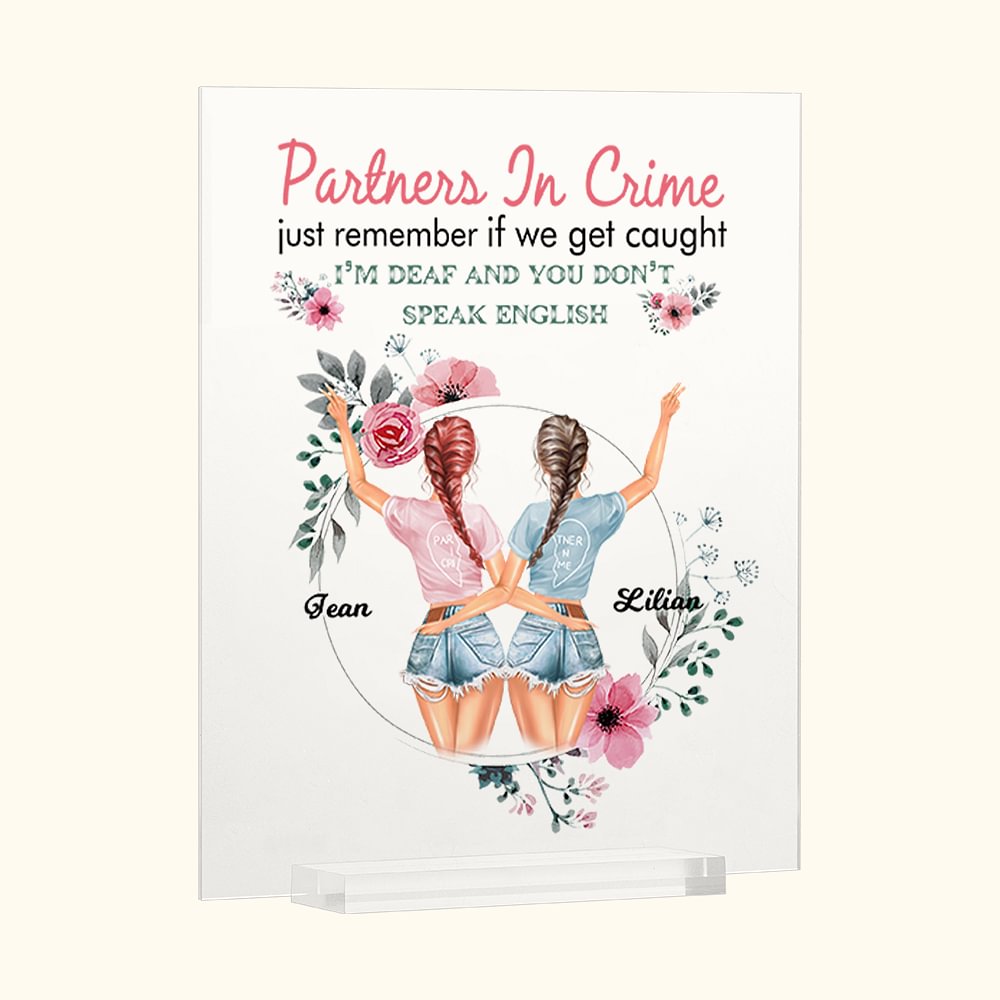 Henkilökohtainen Rikostoverit Muista vain, jos jäämme kiinni, olen kuuro ja sinä et puhu englantia Akryylilaatta Akryylinen koriste
