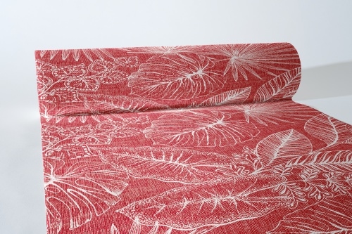 MANK Tischläufer aus Airlaid, Kona in Bordeaux, 40 cm x 24 m , 1 Stück - Tischband Tischtuch Floral