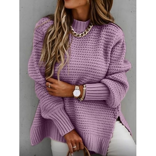 Per donna Felpa Casual Morbido Colore Puro A Coste Girocollo Lavorato a maglia Testurizzato Manica Lunga Top Regolari Maglia All'aperto Quotidiano Weekend Nero Rosa Autunno Inverno