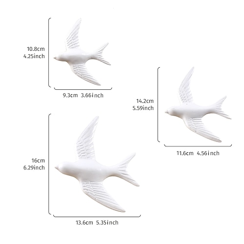3 pezzi di moderna e semplice decorazione da appendere in resina bianca con uccellino con ali spiegate, decorazione tridimensionale da parete per hotel per famiglie, decorazione da parete per interni,