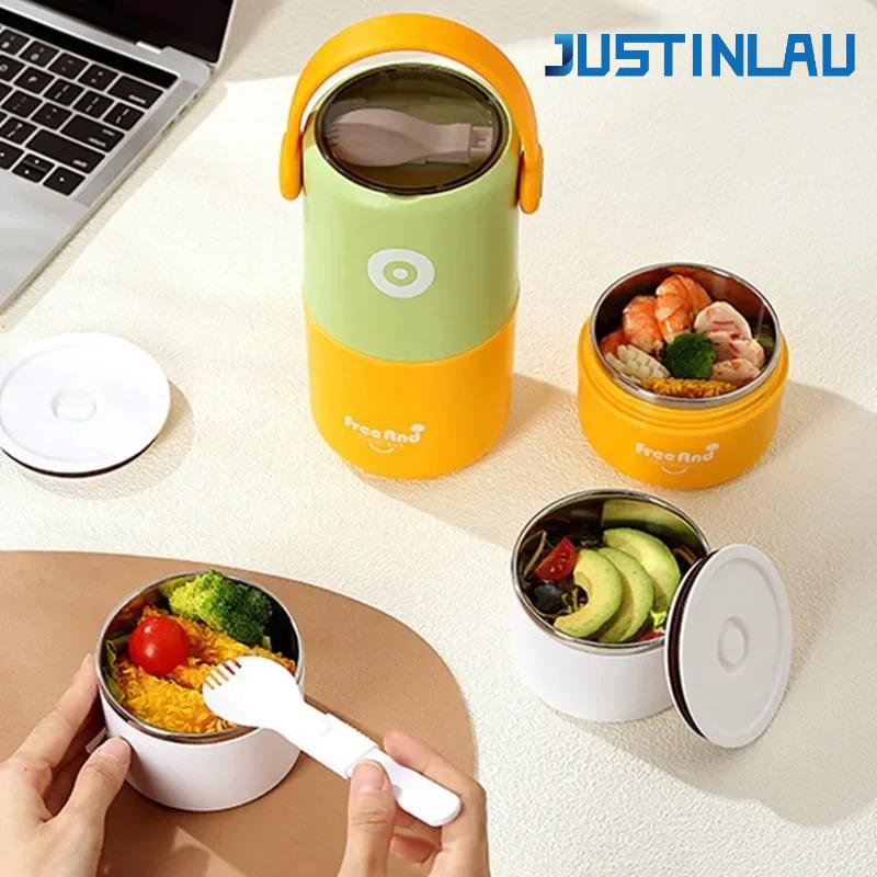 JUSTINLAU 580/820ML Insulated Soup Cup with Spoon Thermal Bento Box Portable Double Layer Lunch Box Thermo Keep Hot for Children
