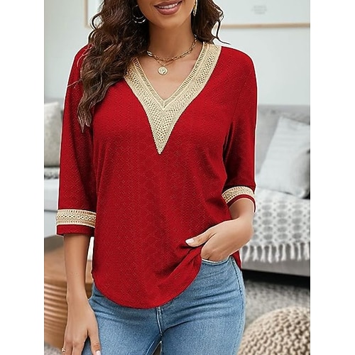 Per donna Camicia Boho Camicia di Pizzo Camicia casual Blusa Bordo in pizzo Vintage Elegante Manica Lunga Manica a Campana Scollo a V Top Regolari Quotidiano Ferie Bianco Estate Primavera