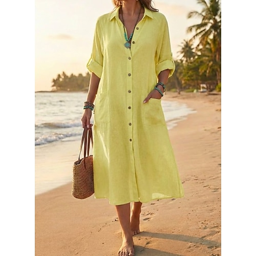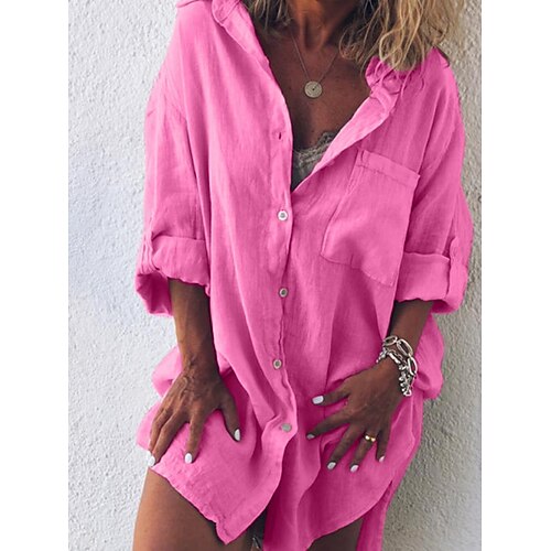 Per donna Camicia Camicie di cotone e lino Blusa Tasca Bottoni Semplice Elegante Classico Moderno Manica Lunga Colletto a Camicia Top Regolari Quotidiano Ferie Uscire Blu Nero Verde chiaro Rosa