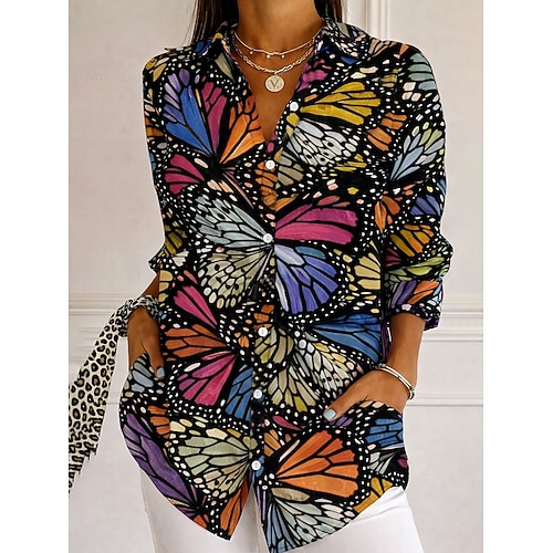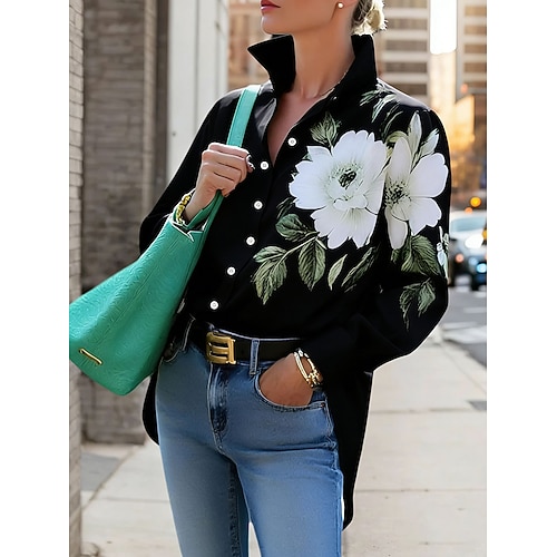 Per donna Camicia Bottoni Stampato Ombre Floreale Grafico Elegante Vintage Moderno Manica Lunga Colletto a Camicia Top Regolari Quotidiano Lavoro Blu Nero Viola Arancione Primavera Autunno Inverno
