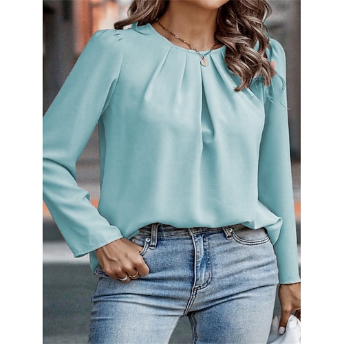 Per donna Camicia popover Camicia casual Blusa Arricciato Tinta unica Elegante Quotidiano Manica Lunga Scollo a V Top Regolari Quotidiano All'aperto Ferie Nero Bianco Rosa Vino Albicocca Primavera