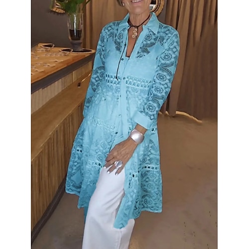 Per donna Camicia Camicia di Pizzo Blusa Pizzo Patchwork Semplice Attivo Elegante Manica Lunga Colletto a Camicia Top lunghi Quotidiano Ferie Uscire Nero Bianco Rosa Azzurro cielo Beige Estate