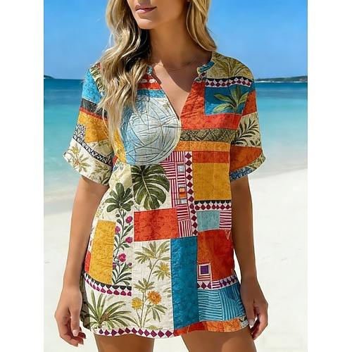 Per donna Camicia Tasca Bottoni Stampato Plaid Vintage Tropicale Elegante Manica Lunga Colletto a Camicia Top corti Quotidiano Blu Giallo Rosso Marrone chiaro Marrone Primavera Autunno