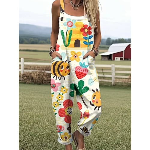 Per donna Tuta Attivo Floreale Senza Maniche Coulisse Vacanza Streetwear Vestibilità comoda Blu marino Blu Viola Estate