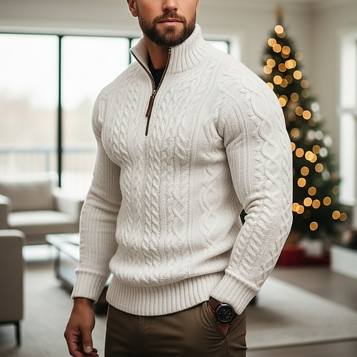 Per uomo Maglioni di Natale Maglione Treccia Maglia Top Regolari Lavorato a maglia Zip a un quarto Semplice Collo alla coreana Moderno Contemporaneo Casual Maglione di Natale Lavoro Abbigliamento