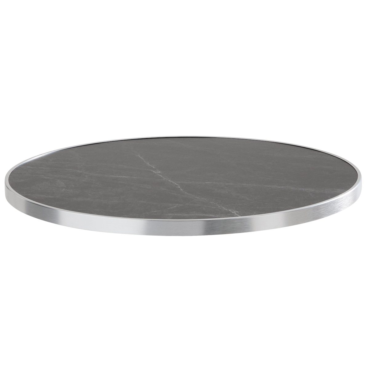 Oviala Business Tischplatte rund Marmor schwarz mit silberner Umreifung 60cm Montmartre - Oviala