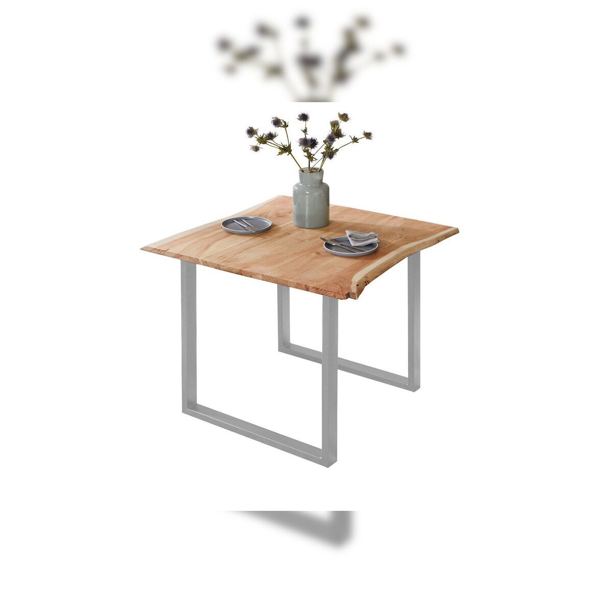 Esstisch Baumkante massiv Akazie naturfarben 90 x 90 cm silber U-Gestell BILLY