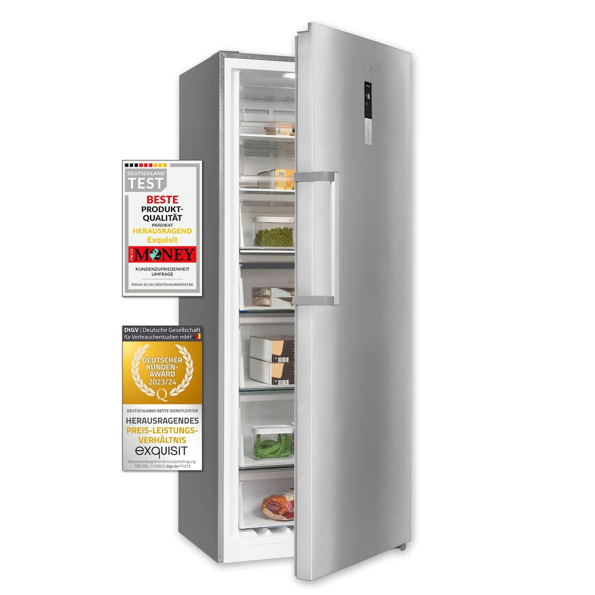 Exquisit Gefrierschrank GS380-NF-H-050E inoxlook | 380 l Nutzinhalt | Edelstahloptik