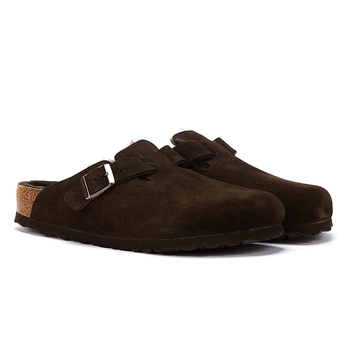 Birkenstock Kids Unisex Boston Shearling Mocca Slippers - Brown Suede - Size UK 5.5 | Birkenstock Sale | Discount Designer Brands