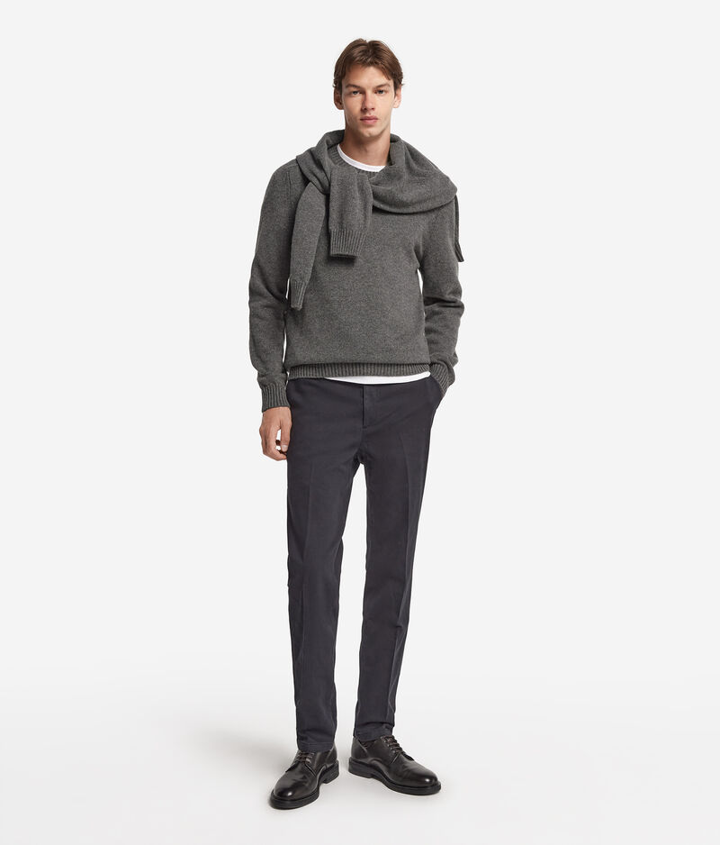 Falconeri Pantalone chino spinato in cotone e cashmere Uomo Blu Navy Taglia 48