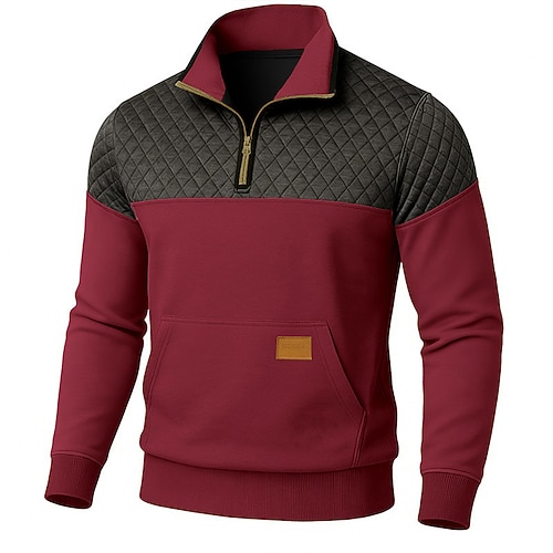 Per uomo Maglia Felpa a nido d'ape Maglione Felpa con zip corta Blu Vino Verde militare Cachi Grigio chiaro Bavero Semplice Patchwork Blocco di colore Testurizzato Casuale Quotidiano Sport Outdoor