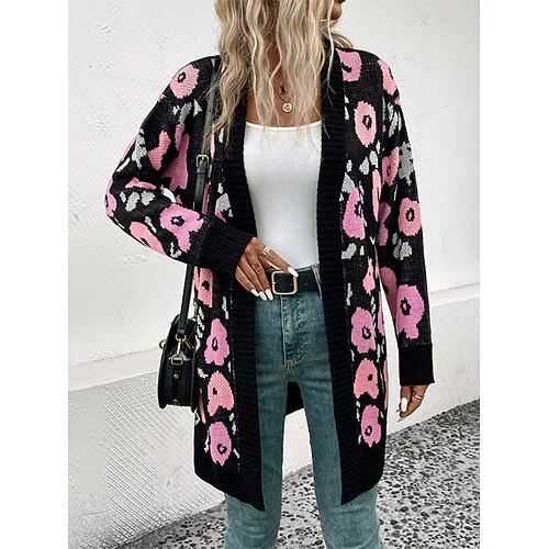 Per donna Cardigan Da ufficio Essenziale Tinta unica Grosso Aperturaanteriore Lavorato a maglia Manica lunga Maglie lunghe Maglia Ufficio Rosa Cachi Autunno Inverno